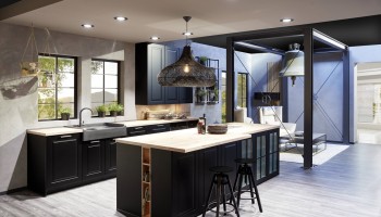 Kontrast między współczesną architekturą a kuchnią w stylu rustykalnym nie może być większy, a jednak jest obecnie na dobrej drodze. Tradycyjna prezentacja stylu rustykalnego dyskretnie pozostaje w tle tej przykładowej kuchni, podczas gdy elementy nowoczesnego wzornictwa przemysłowego zajmują centralne miejsce.